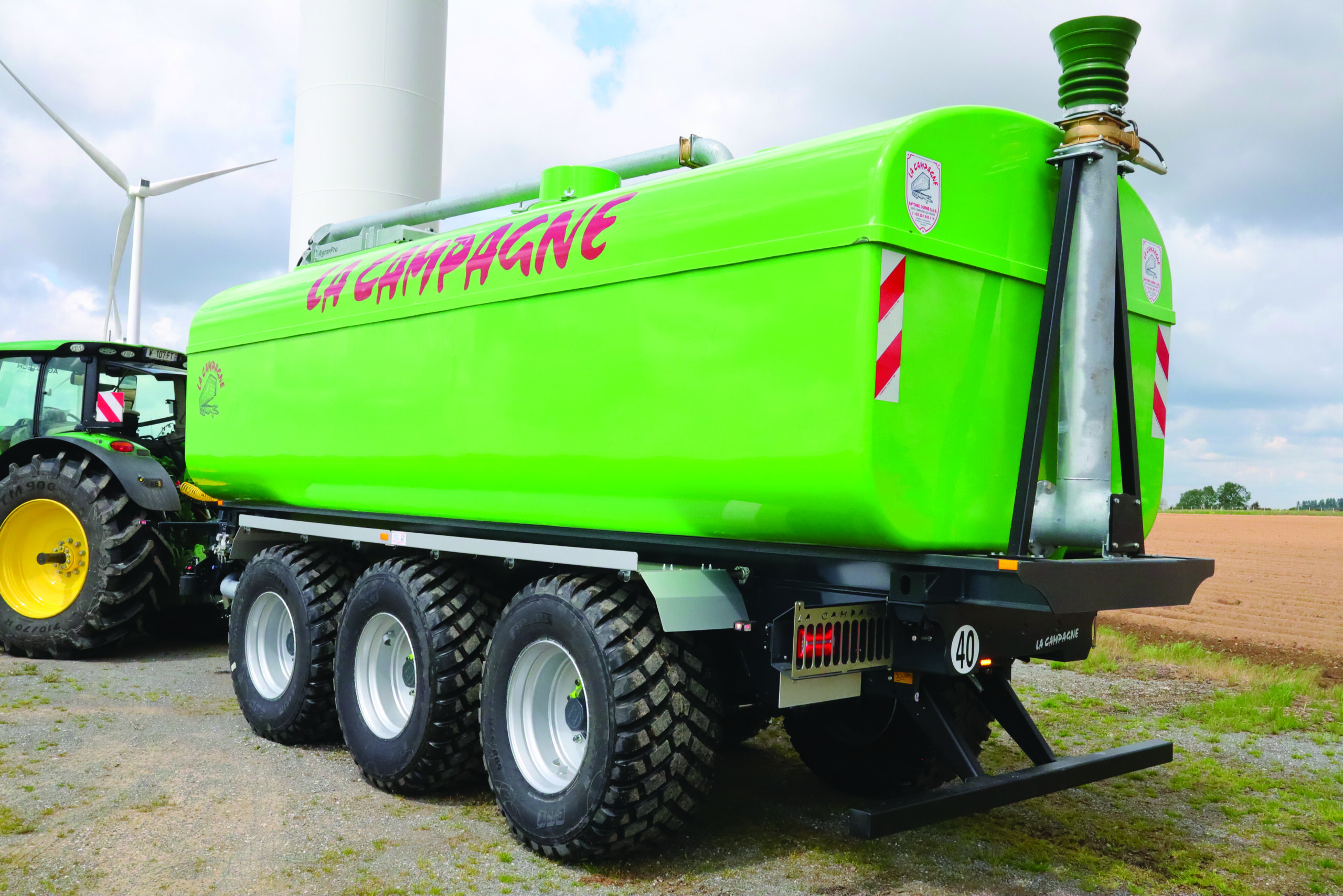 La cuve de transfert LA CAMPAGNE est disponible uniquement en triple essieux (32 t PTAC). D’une capacité de 30 000 litres, elle s’adapte, grâce aux différentes configurations possible, à tous vos besoin pour le transfert de vos effluents liquides qu’ils soient issu de l’élevage, de méthanisation ou de l’industrie (digesta, lisiers, boues…). Cette solution offre la meilleure alternative aux tonnes à lisier traditionnelles pour le respect du code de la route grâce à son poids à vide allant de 6,5 tonnes à 8,5 tonnes selon les équipements.